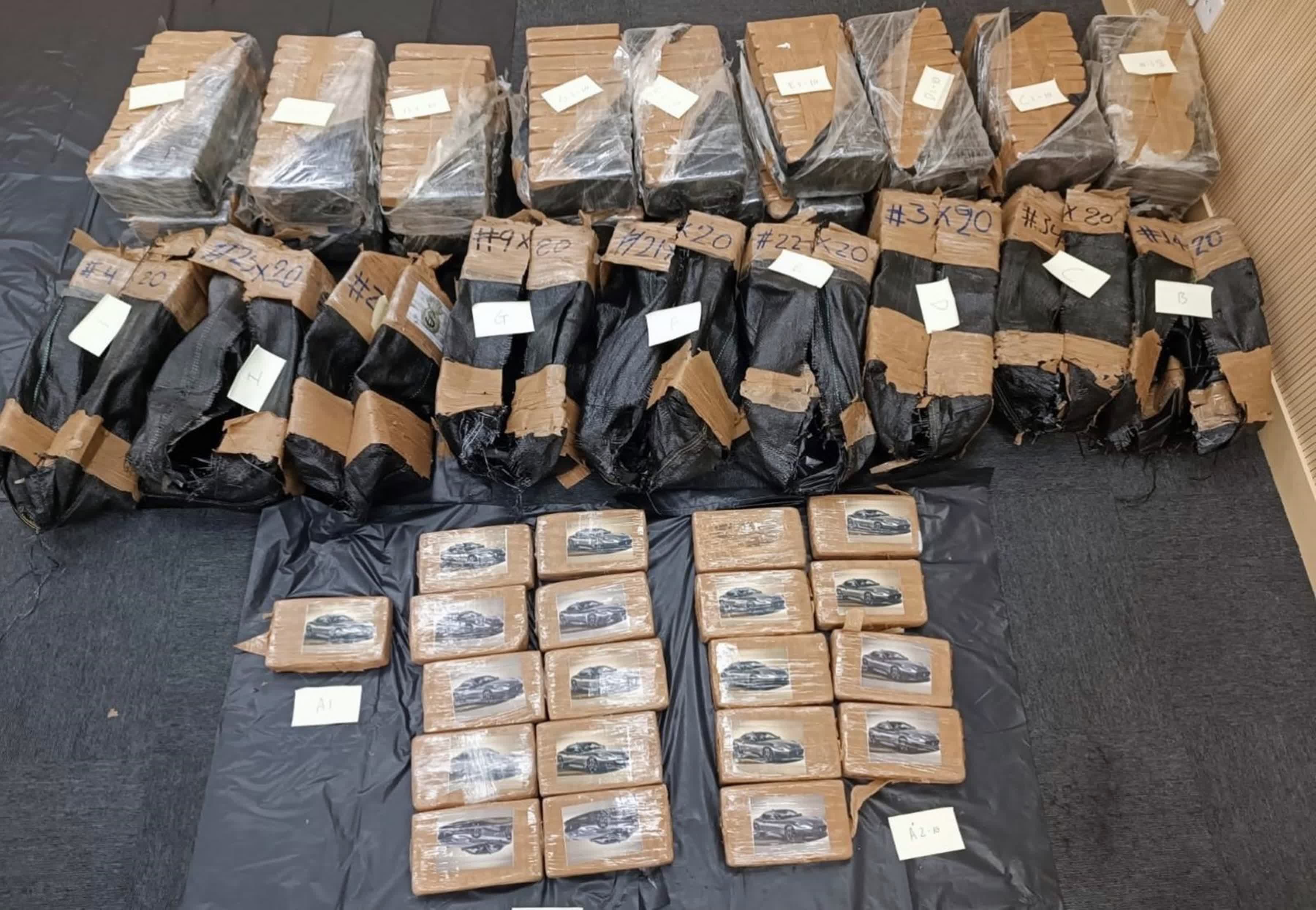 警方在涉案客貨車的車廂內發現10包用黑色尼龍袋裝載的可卡因。