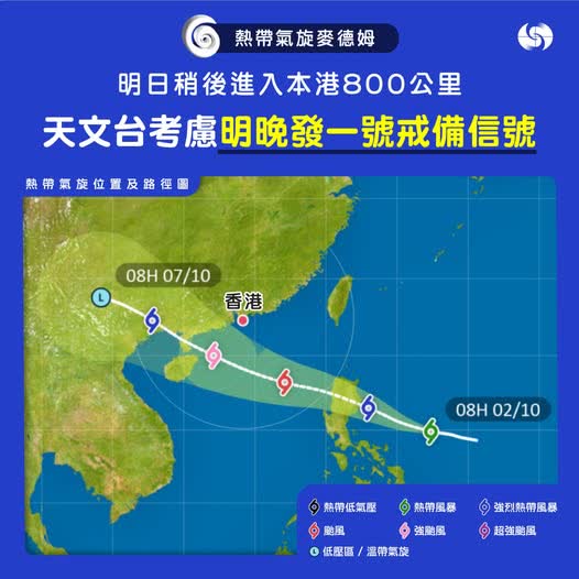 天文台指,會視乎麥德姆與珠江口的距離、其強度及本地風力變化,評估是否需要在星期六日間改發更高熱帶氣旋警告信號。市民請密切留意天文台的最新天氣消息。