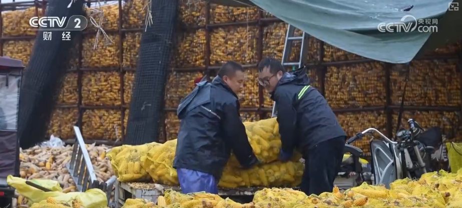 同样,邢台市柏乡县的玉米收割也遇到了降雨。在当地的一处秋粮收储点,工人们正把抢收回来的玉米棒装进网袋,在未脱粒的状态下做防霉存储。