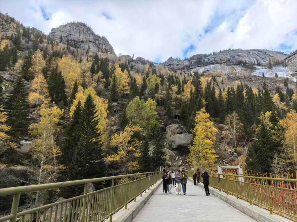 10月2日,游客在新疆可可托海景区赏秋。新华社记者 蔡国栋