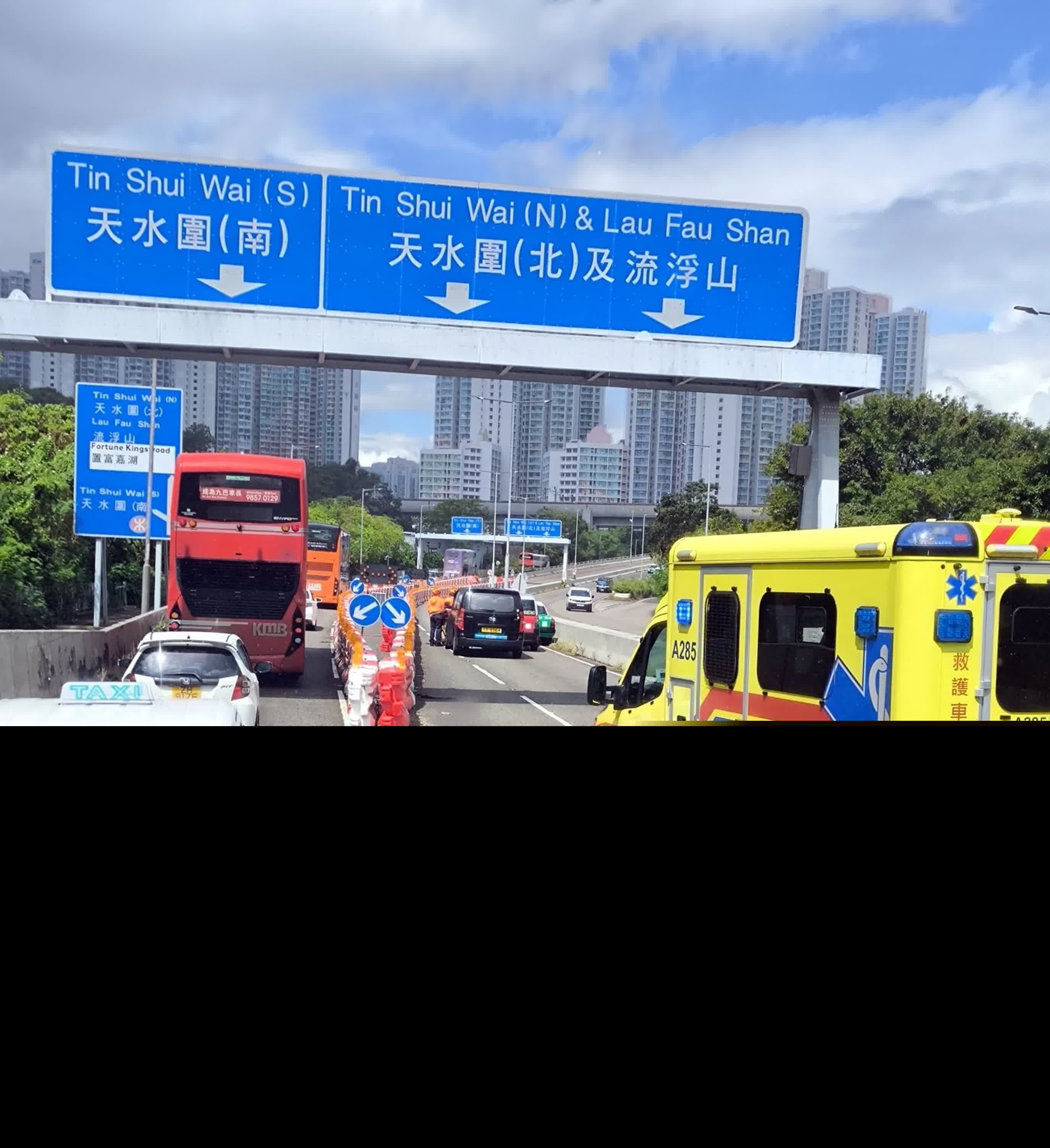 香港文匯報訊(記者 蕭景源)今日(13日)上午約11時27分,一輛新界的士(綠的)、一輛市區的士(紅的)及一輛「GOGO VAN」客貨車,在元朗朗天路往天水圍方向發生首尾相撞意外,當中紅的被夾在綠的與客貨車之間,司機一度被困,其後獲救報稱頸痛,要由救護車送院治理。受意外影響,現場交通一度受阻,警方正調查意外原因。