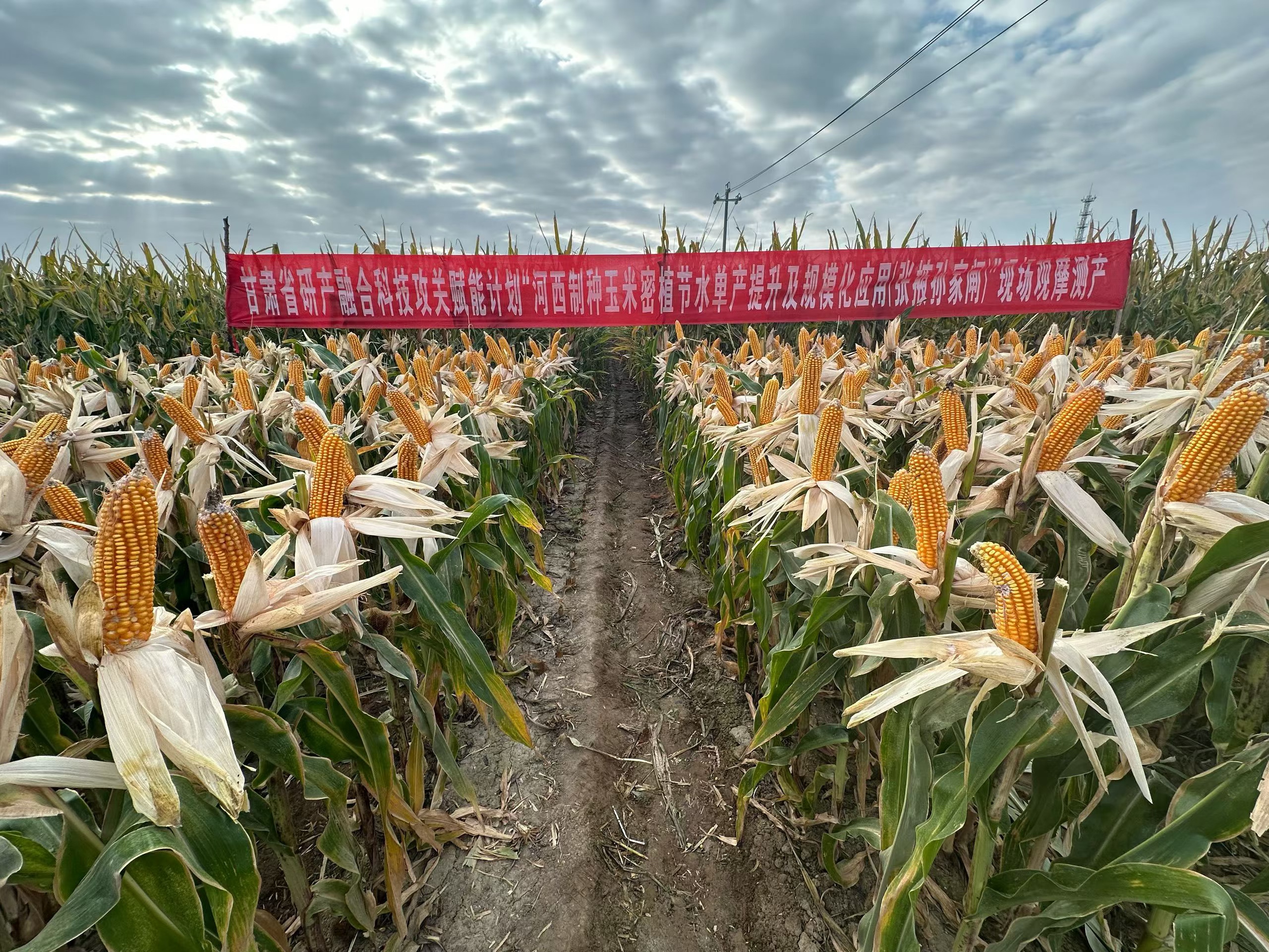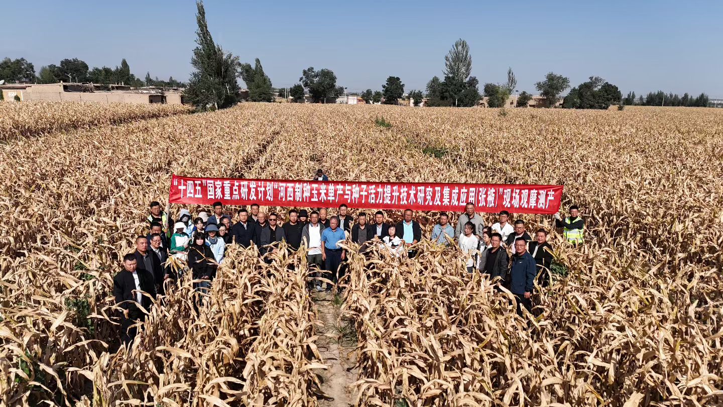 金秋时节,地处河西走廊的武威、张掖等地的制种玉米迎来收获季,满眼金黄的田间,株株玉米秆壮穗齐,一派丰收景象。当日,为促进河西制种玉米增产增效,甘肃省农业科学院旱地农业研究所联合省种子总站、省农业技术推广总站在武威、张掖举行河西制种玉米单产及种子活力提升技术规模化应用观摩研讨会,与会代表们先后走进武威市凉州区、张掖市甘州区,实地观察制种玉米密植单产提升技术示范及不同制种组合增密试验、富硒玉米种子生产及高效节水、生物降解膜等多项技术集成模式应用情况,并对两地千亩示范区及增密试验进行了测产。