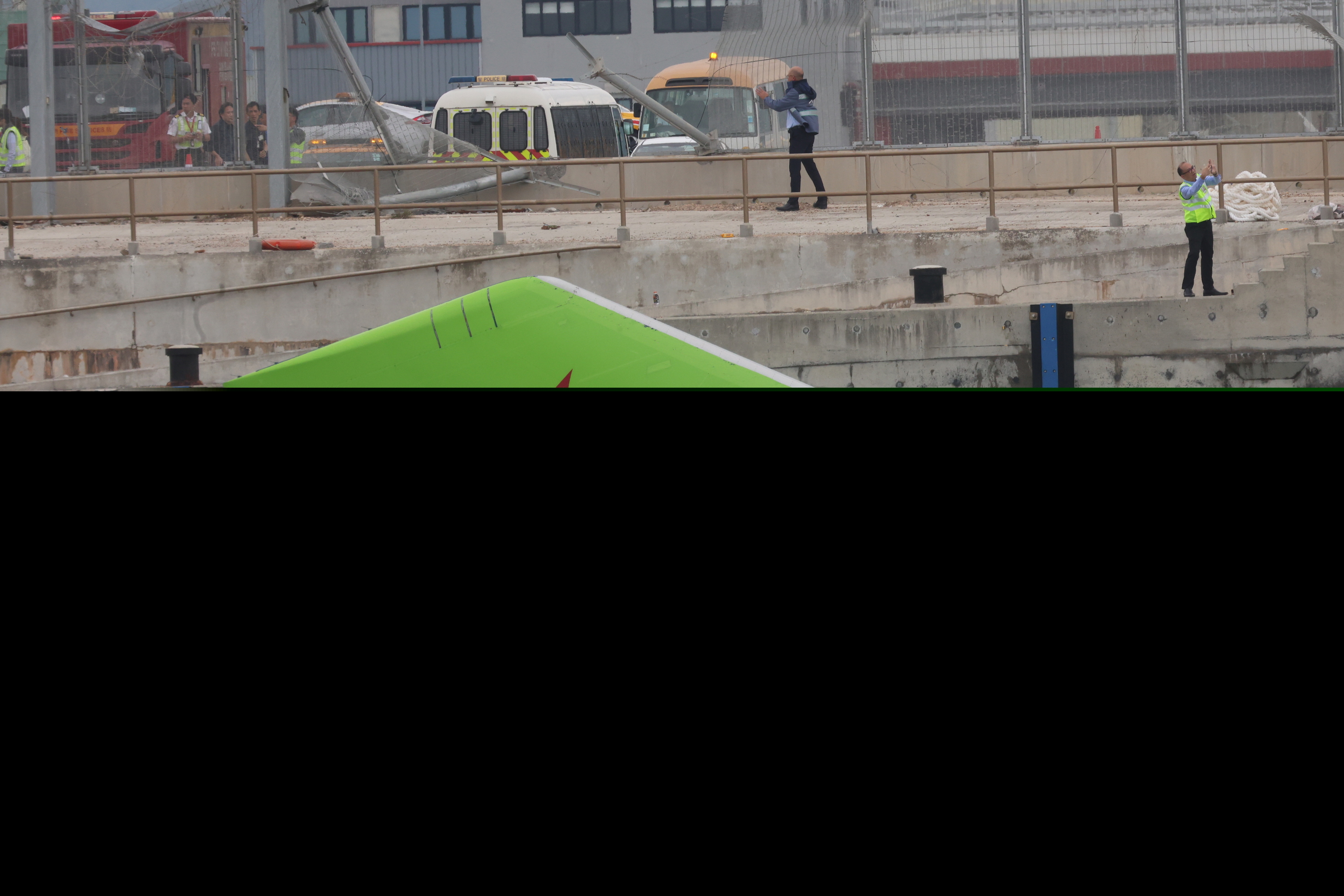 香港文匯報訊(記者 蕭景源)香港國際機場昨日(20日)發生的阿聯酋航空貨機衝出跑道墮海事故,造成被撞落海的保安巡邏車上兩人罹難,飛機殘骸今日(21日)仍未移走。香港機場管理局(機管局)傍晚指,受事故影響而要關閉的香港國際機場北跑道已於今日下午約4時20分重開,可按照航空交通管制使用,但為配合移走失事飛機殘骸的工作,北跑道現時維持「備用狀態」。由機管局發布的照片可見,現場跑道清晰可見肇事貨機轉向留下的長長機胎痕。