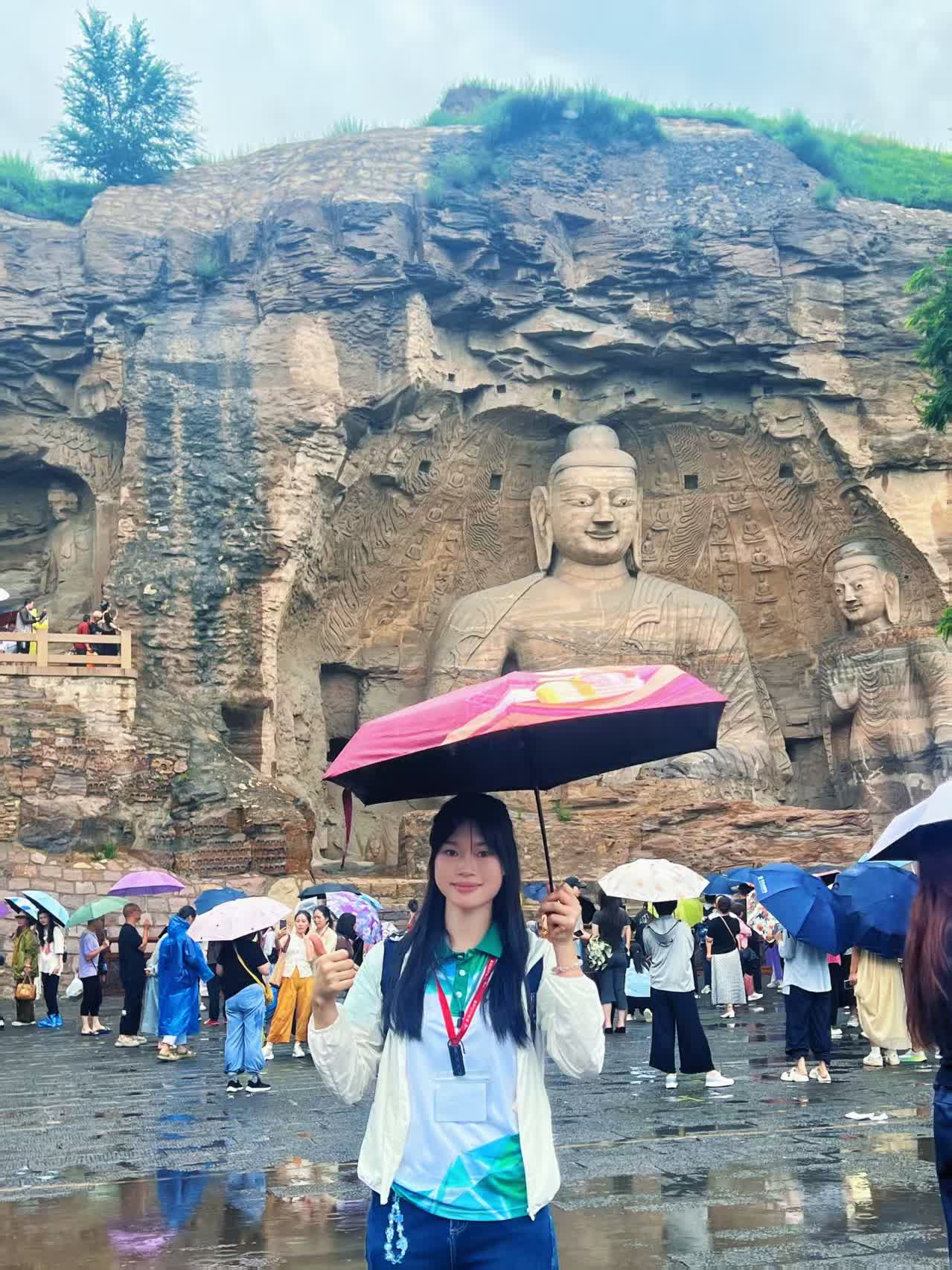 過了幾天,我跟團隊來到大同,雲岡石窟宛如一顆鑲嵌在山西大地上的璀璨明珠,是我此次山西之行中最為期待的聖地。當我踏入這片神聖的土地,莊嚴肅穆之感瞬間將我籠罩。沿着參觀路線緩緩前行,眼前的景象讓我驚嘆不已:一尊尊巨大的佛像矗立在洞窟之中,它們形態各異,有的慈眉善目,似向世人傳遞無盡的慈悲與關懷;有的威嚴莊重,彰顯著佛法的神聖。這些佛像歷經千年的風雨侵蝕,卻依然保存得相對完好,其雕刻工藝之精湛,令人嘆為觀止。
