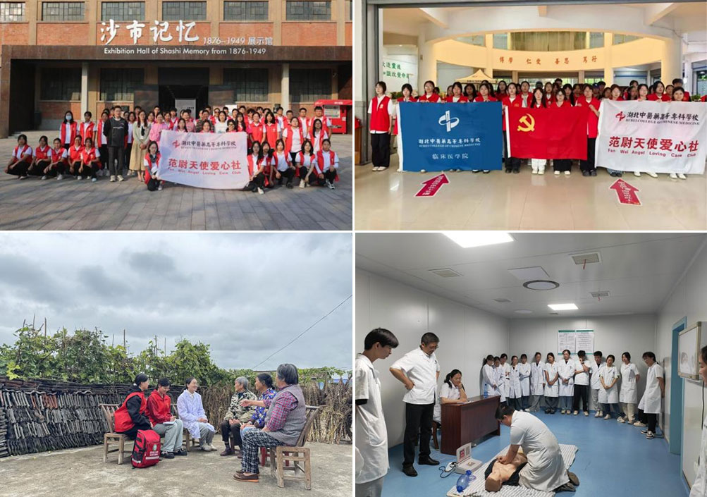 学校以党建为引领,发挥全国党建工作样板支部作用,依托临床技能协会、范尉天使爱心社等党团组织为实践育人载体,构建校园行、基层行、西部行、产业行业行的育人体系,开展学雷锋主题教育活动月、暑期社会实践等系列活动,有效辐射至周边10余个县市区。涌现了以“健康卫士·基层有我”湖北省社会实践重点团队和全国爱心达人范尉、全国大学生自强之星黄振光为代表的一大批优秀团体和个人。受先进典型引领,报名参加“西部计划”近800人,报名参加应征入伍近300人。