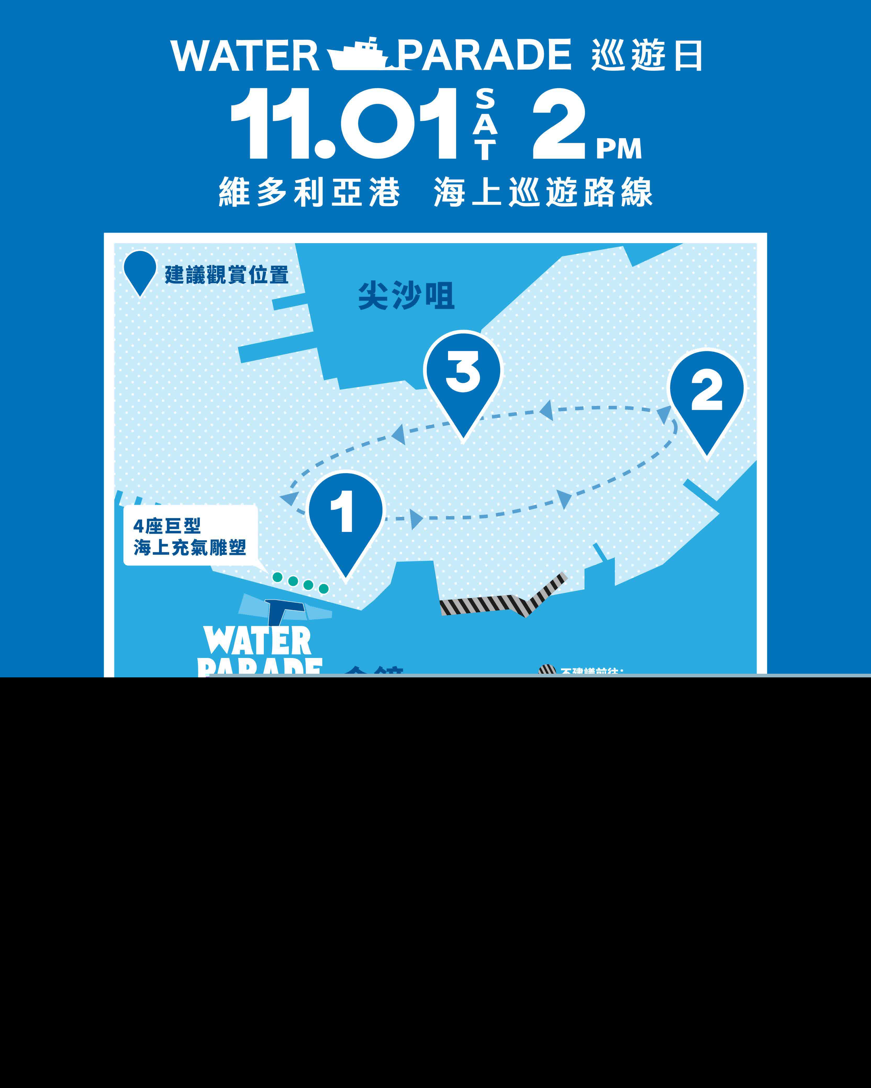 主辦單位指,航行路線及充氣雕塑的實際呈現,將因應當日天氣及海面情況而作出相應調整;又特別呼籲,活動當日請勿駕駛或乘坐私人船隻靠近艦隊,以免衝擊或製造海浪影響充氣雕塑。觀眾可於維港兩岸不同地點安全欣賞巡遊盛況。