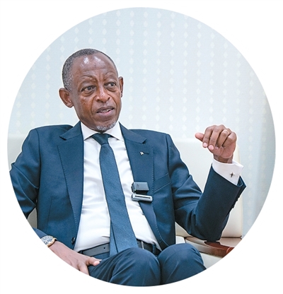 卢旺达驻华大使詹姆斯·基莫尼奥接受本报记者专访。陶语嫣摄