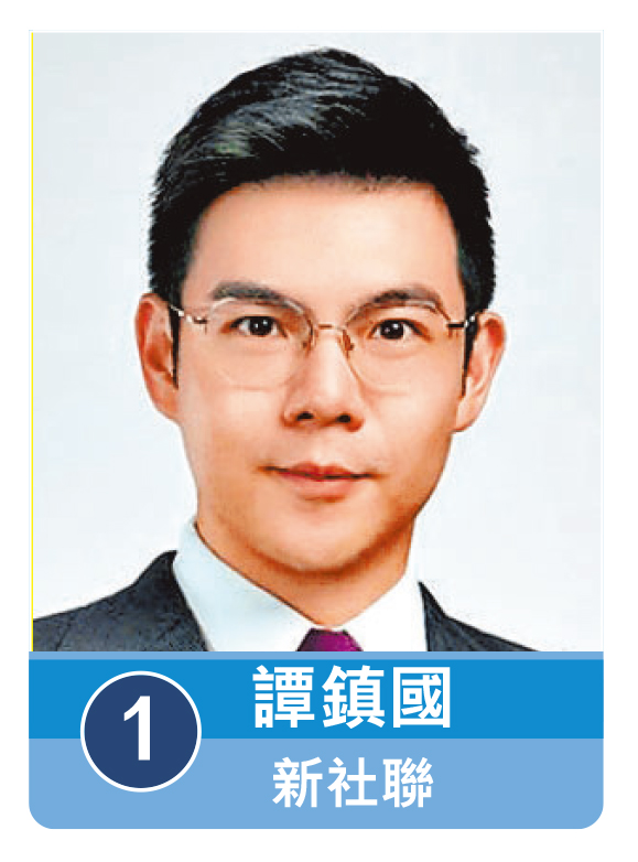 1號候選人,新界社團聯會理事長、北區區議員譚鎮國的政綱重點着墨於北都區發展。他表示,北部都會區項目關乎香港未來,期望能充分運用他在商界、教育界等多個界別的跨界背景、豐富經驗與專業能力,推動北都發展提速提效。他提出「提速北都,為你增值」的競選口號,並提出「五項提速,七大增值方向」政綱。