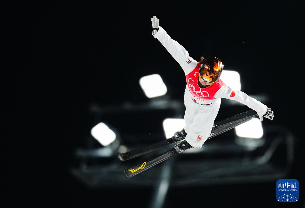 2022年2月14日,中国选手徐梦桃在北京2022年冬奥会自由式滑雪女子空中技巧决赛中夺得冠军。新华社记者许畅摄