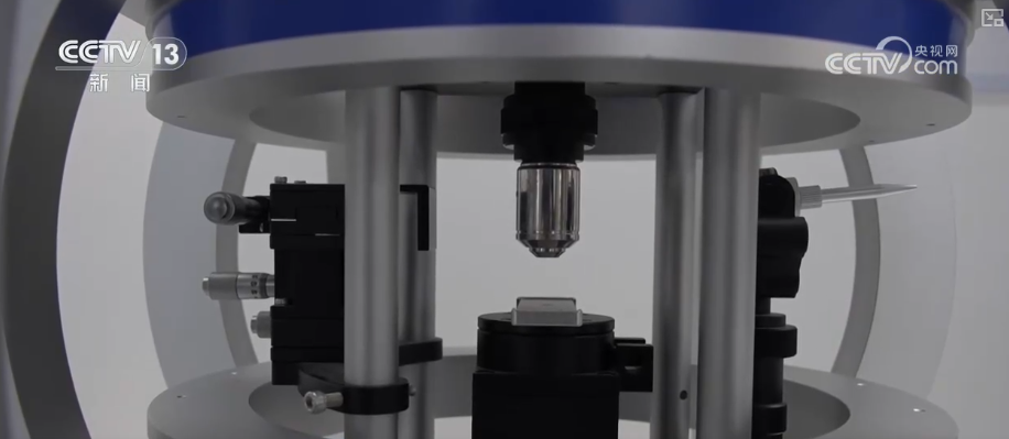 这是一个量子精密传感器,它并不是我们肉眼所看到的元器件,而是在针尖上我们看不到的,它只有0.5纳米大小,相当于头发丝直径的十万分之一。有了它,就可以检测到以前测不出来的非常微弱的磁场。