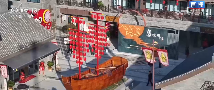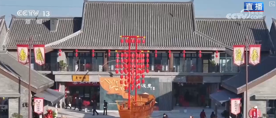 秦渡服务区是陕西首个关中风情交旅融合示范区,通过航拍可以直观感受到这里建筑的特征,青瓦灰墙的建筑沿主街错落分布,红灯笼与木质招牌点缀其间,保留着传统关中民居的质朴韵味,步入其中仿佛来到一个关中风情小镇。古渡新韵 双舟对话千年漕运