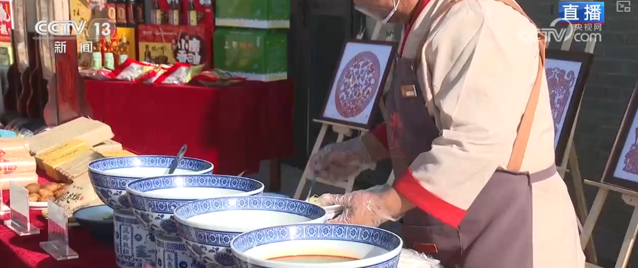 营业首日,一些室内的场景也特意挪到了室外来吸引旅客。这几个摊位上,几位非遗传承人展示着关中代表性项目,比如这个叫户县剪纸,历史悠久,可以追溯到东汉时期。这个是户县农民画,是在关中地区的剪纸、壁画、刺绣等民间艺术的基础上演变而成的。值得一提的是,在秦渡服务区将“看非遗”变为了“做非遗”,服务区设有剪纸教学、布老虎缝制等非遗工坊。寻味秦渡 多种特色美食满足味蕾