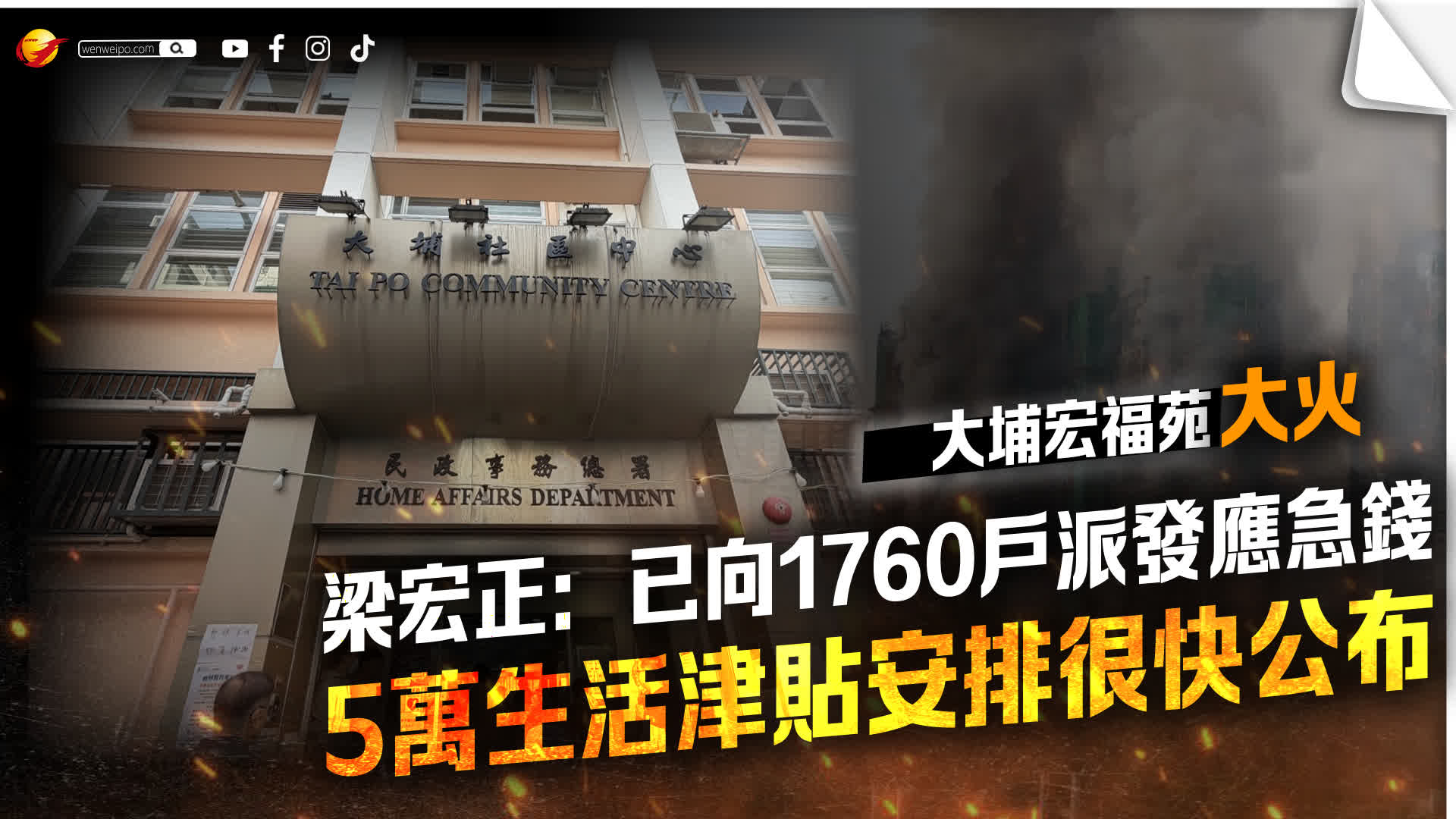 政府正為大埔宏福苑五級火受影響居民提供支援。自11月27日,政府陸續向每戶受影響居民提供1萬元現金的應急補助金;此外,政府亦會就每位死難者,向家屬發放20萬元慰問金,並由本星期開始,為每一戶受影響家庭發放5萬元生活津貼。