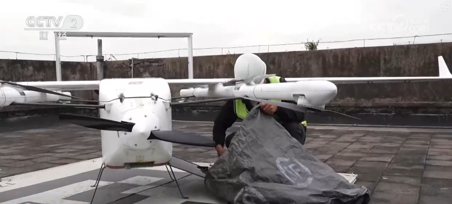 记者随快递员来到附近的无人机航站,看到刘先生寄出的合同与其他快件一起集中装运,准备起飞发往珠海。