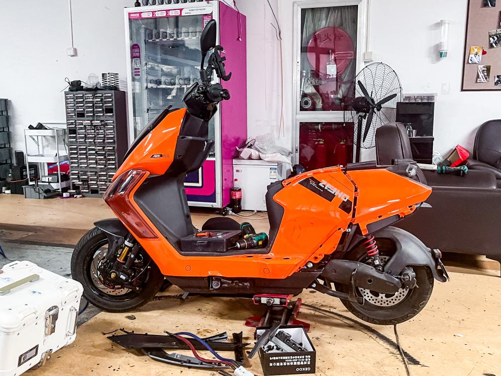 11月26日,在上海市郊一家电动自行车改装店铺,工作人员对电动自行车进行改装。改装后的车辆时速可轻松破百。
