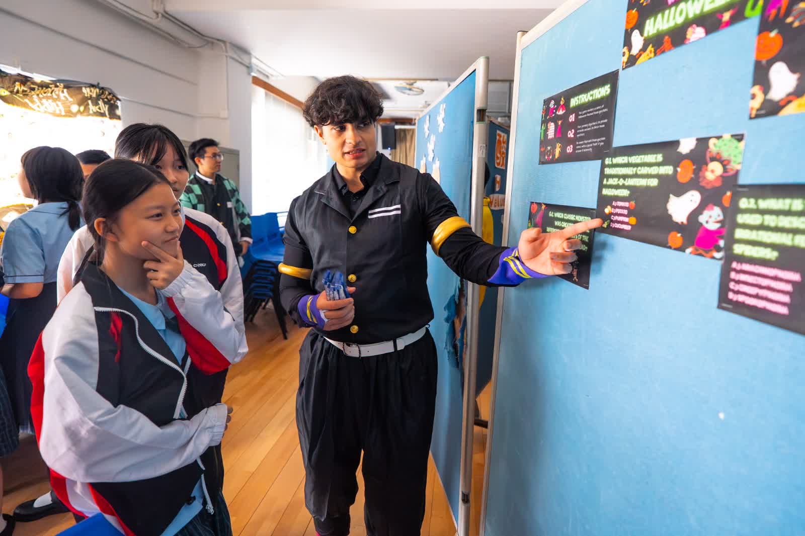 On Thursday, 31 October, the English Department of Hong Kong SYC&IA Chan Nam Chong Memorial College transformed Room G04 into a lively Haunted House for a special Halloween activity. Running from 13:30 to 14:00, the event featured four creative booths designed to engage students in fun language-based games while celebrating the spooky season.