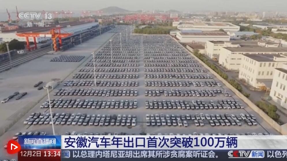 据合肥海关统计,截至目前,安徽汽车年出口量已突破100万辆,这也是安徽省汽车年出口量历史首次突破百万辆。其中,近30万辆是电动汽车。