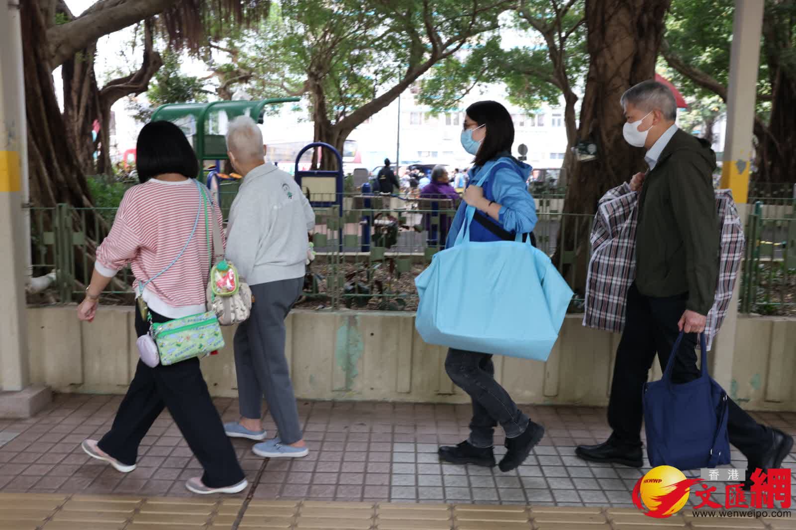 其中陳女士帶同3個行李箱收拾物品,她說事前已寫好需要取回什麼物品,例如銀行存摺簿及衣服等,以便盡快收拾後離開,不想阻礙他人,又認為政府安排貼心,有人協助登記,亦有社工在場。