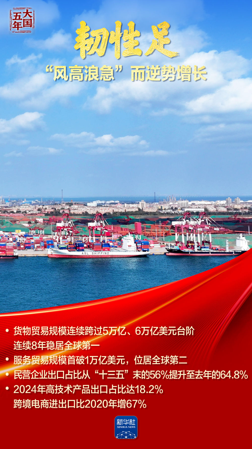 这五年,“智能”“绿色”焕新潮涌,国风文创、数字消费勾勒品质生活新图景;服务消费快速增长折射结构优化;“中国机遇”惠及世界,“中国市场”成为共享市场。跟随海报,共同见证超大规模市场蕴藏的磅礴底气,感受提振内需释放的澎湃动力。