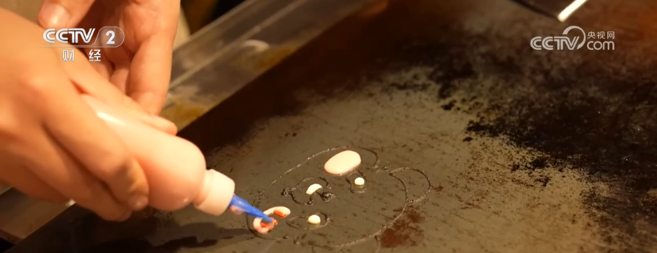 每当夜幕降临,成都抚琴夜市的这个煎饼摊前就排起了长队。不同于寻常煎饼摊,“95后”的摊主曾雅鑫更像是在高温铁板上“绘画”,勾线、填色、雕琢细节……一套动作行云流水,一张可爱的卡通图案煎饼就做好了。