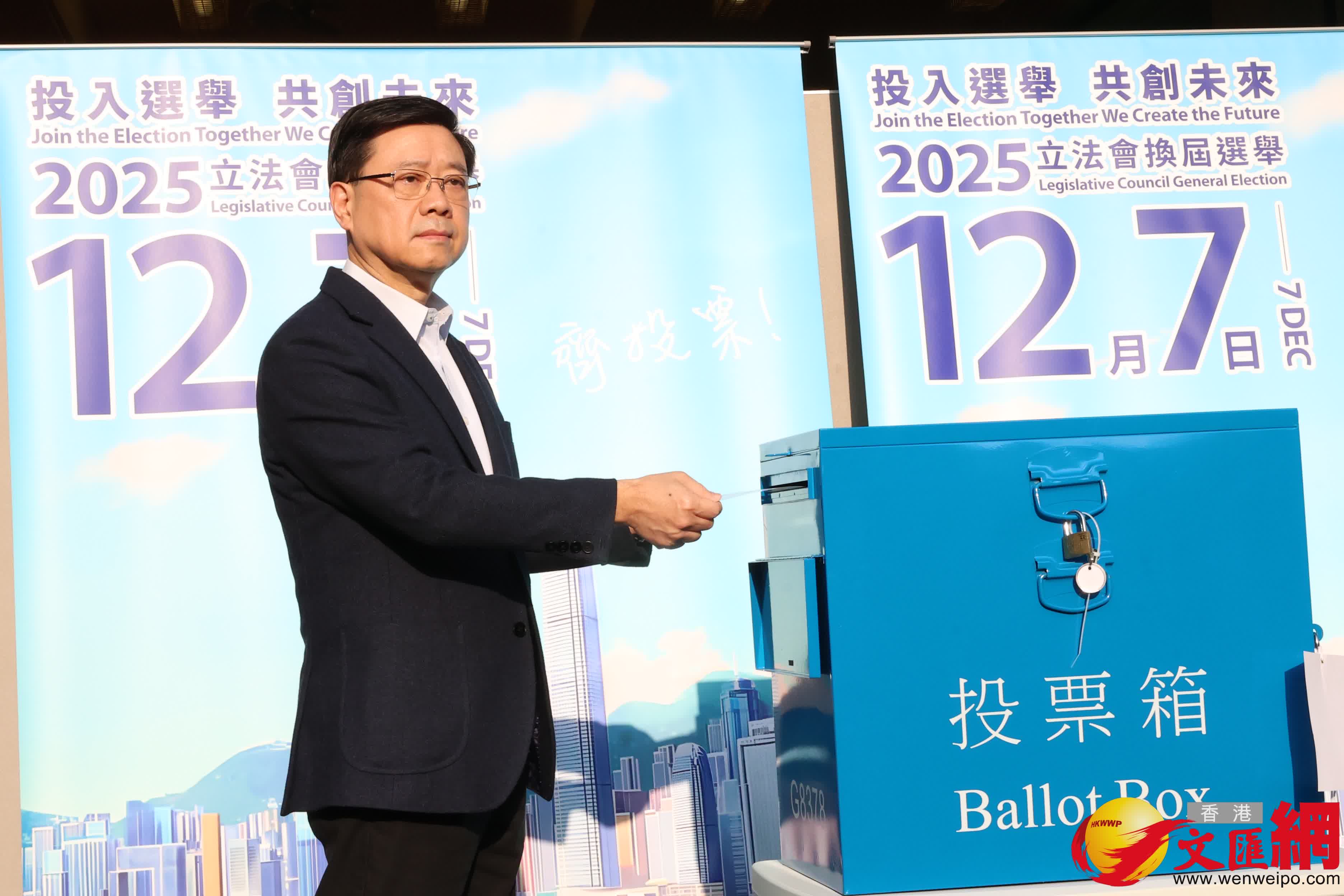 行政長官李家超於高主教書院投票站進行投票。(香港文匯報記者萬霜靈攝)