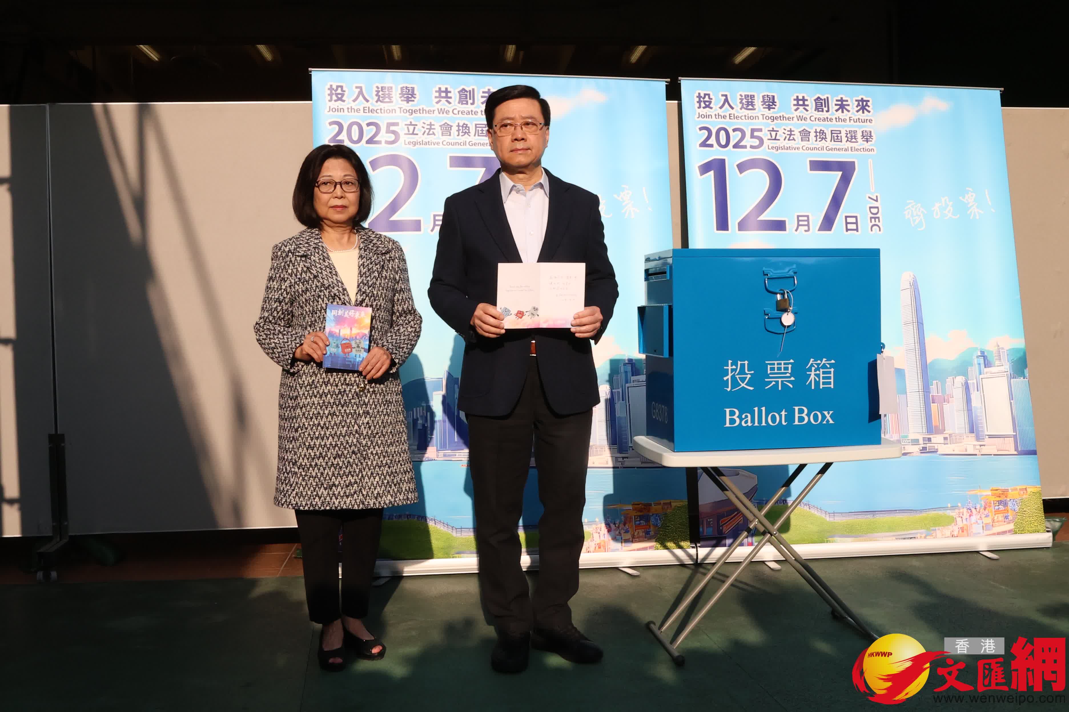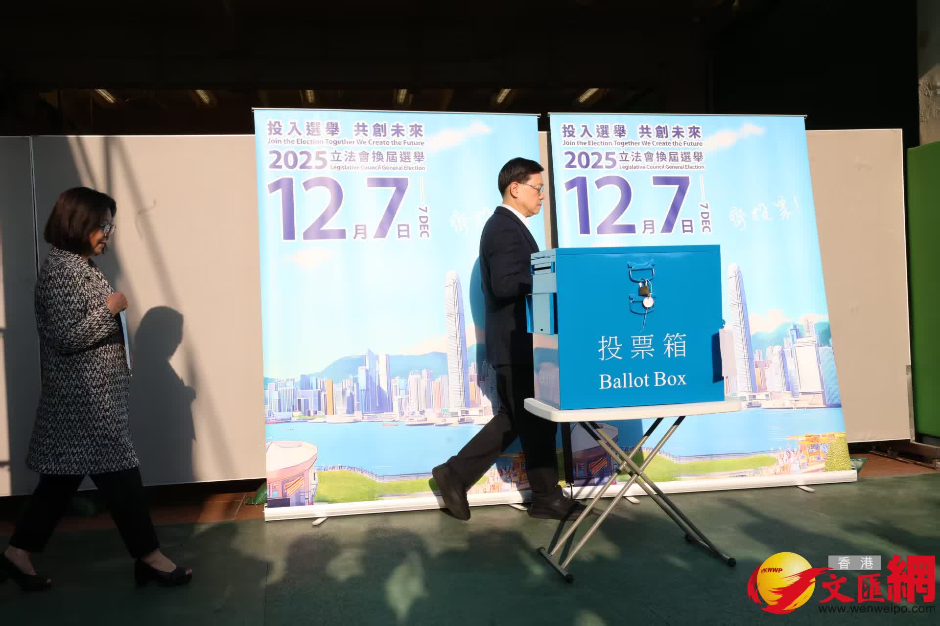 (香港文匯報記者萬霜靈)立法會換屆選舉今日(7日)舉行。行政長官李家超與夫人於高主教書院投票站進行投票。