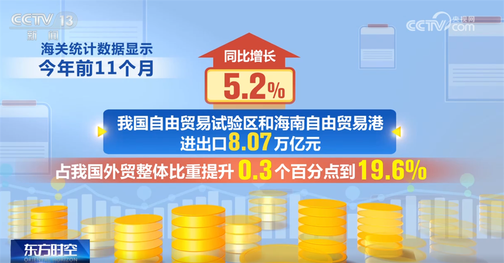 种苗花卉等特色农产品在中亚、东南亚国家稳步畅销,为新疆自贸区打造起兼具生态价值和经济价值的产业标杆。今年前11个月,我国自由贸易试验区和海南自由贸易港进出口8.07万亿元,同比增长5.2%,占我国外贸整体比重提升0.3个百分点到19.6%。
