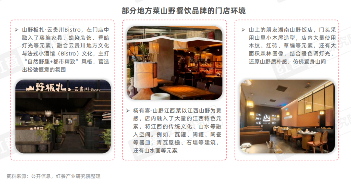 近年来,在中式正餐赛道也出现了一批山野餐饮品牌,它们聚焦于地方菜系打造“山野风”,形成了鲜明的特色,成功走出了差异化的路径。