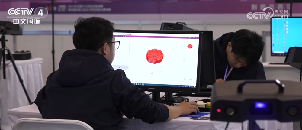 镜头转向制图员赛区,大家可以看到选手们正在电脑前专注地进行操作。与之前的比赛不太一样,本次比赛要求制图员们先用AI工具去生成一个独特的月饼造型,然后根据这个造型自己去绘制模具的图纸,再用图纸亲手操作3D打印机来把模具给做出来,之后进行试模装配,然后再把这个月饼的成品给做出来。整个过程就实现了一个从数字化图纸到实物产品的完整现代化生产流程。