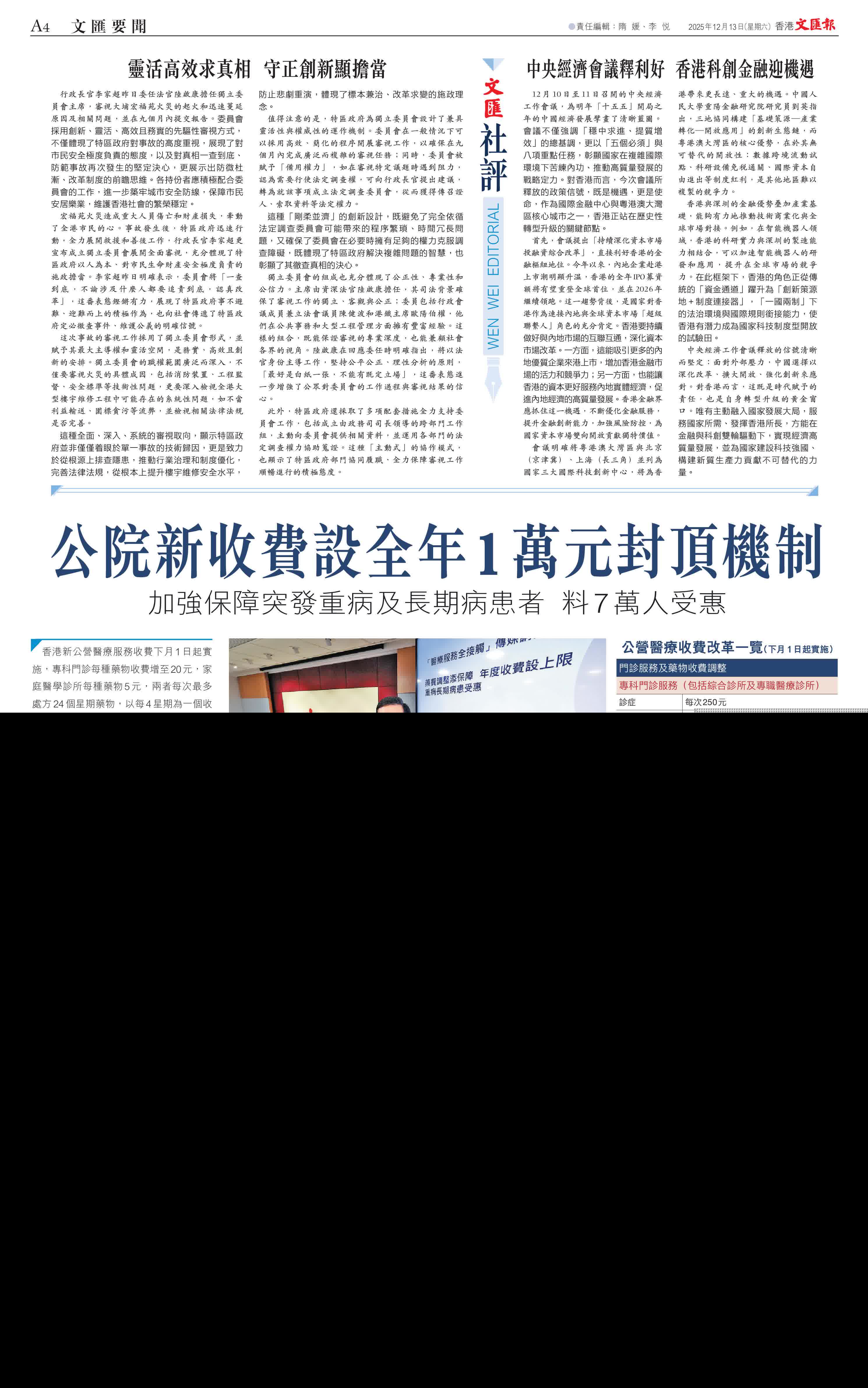 全年1萬元醫療收費上限亦會同步推出,醫管局總行政經理(庫務、保險及收入管理)翁美玉表示,新措施旨在確保病人不會因醫療費用增加而構成沉重財務負擔,加強保障不幸患上突發重病及長期病患病人,措施涵蓋所有住院及門診服務,自費藥械除外,預計約有7萬人受惠。