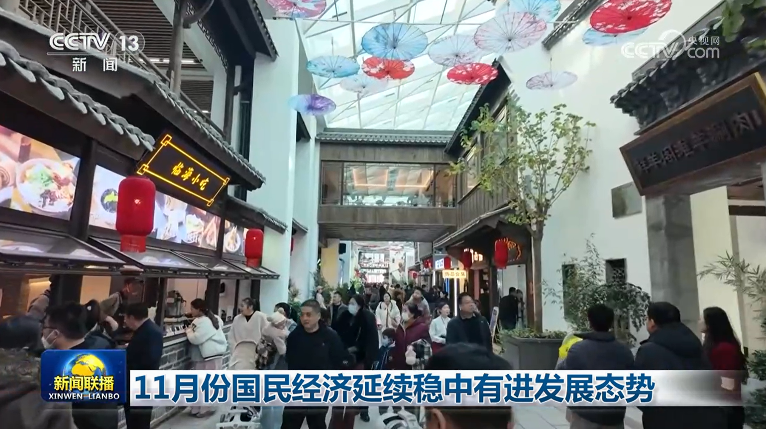 提振消费专项行动深入实施,消费品以旧换新政策发力显效,促进了消费规模扩大、消费动能焕新。1—11月,社会消费品零售总额同比增长4%,增速不仅快于上年同期,也快于上年全年。其中,服务消费较快增长,新型消费稳步成长。前11个月,实物商品网上零售额同比增长5.7%,占社会消费品零售总额的比重达到25.9%,对消费的引领和支撑作用日益显现。
