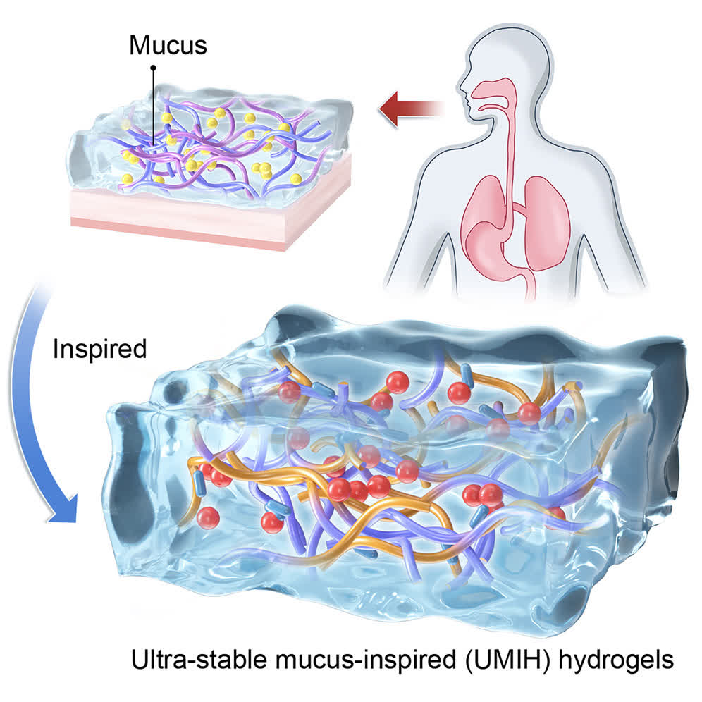 如同一般水凝膠,UMIH由多種聚合物網狀結構組成,能吸收水分,形成強韌的膠狀稠度。不同的是,為增強其耐酸能力,研究團隊在UMIH的結構中加入了三種具關鍵作用的分子成分:能在酸性環境下結合氫離子,以降低局部酸度的蛋白質ELR-IK24;增強水凝膠黏附力的單寧酸;以及可在酸性環境下,穩定水凝膠結構的分子HDI。