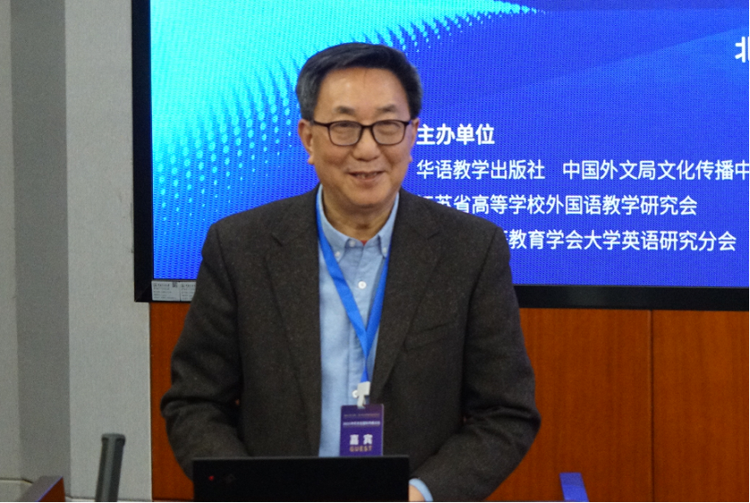 江苏省高等学校外国语教学研究会会长、东南大学教授李霄翔致辞(华语教学出版社供图)