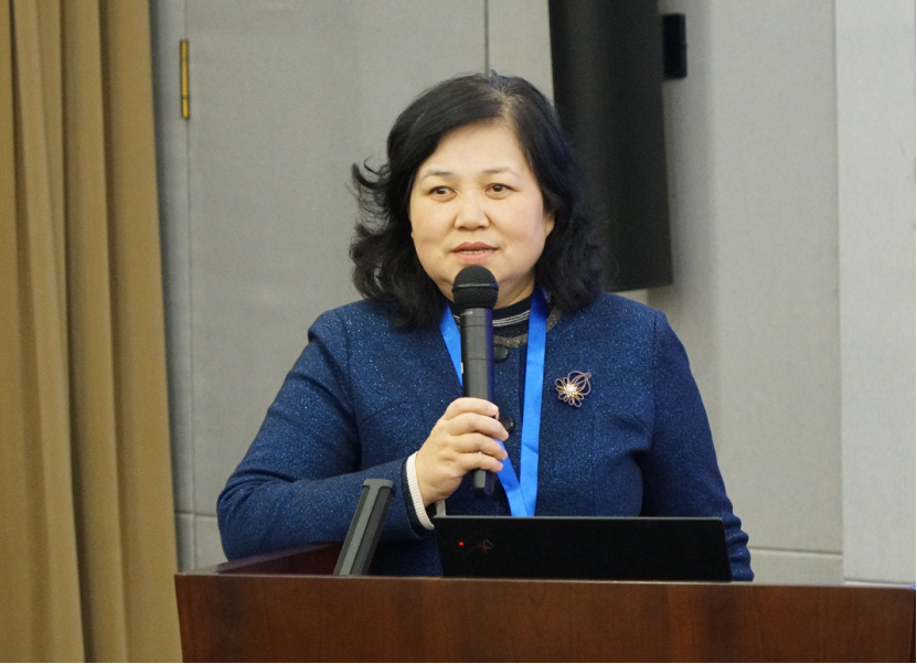 北京市高等教育学会大学英语研究分会理事长、北京大学外国语学院党委书记李淑静致辞(华语教学出版社供图)
