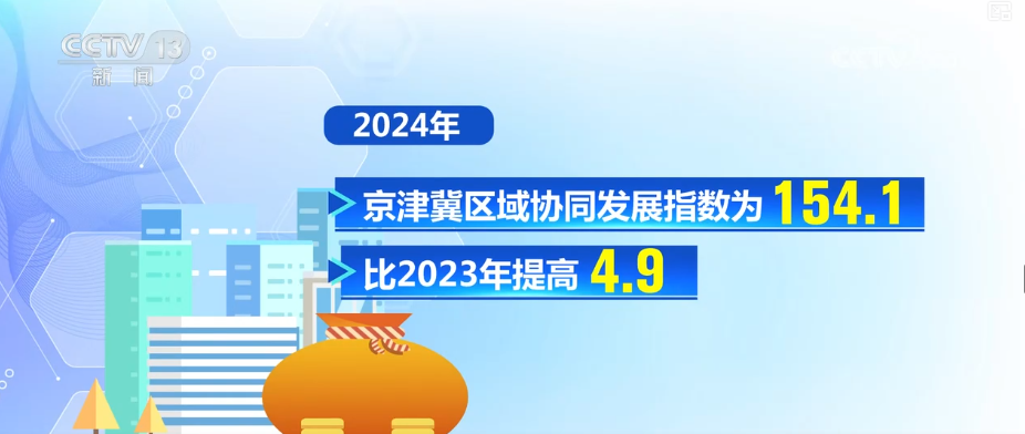 2024年,京津冀区域协同发展指数为154.1,比2023年提高4.9。