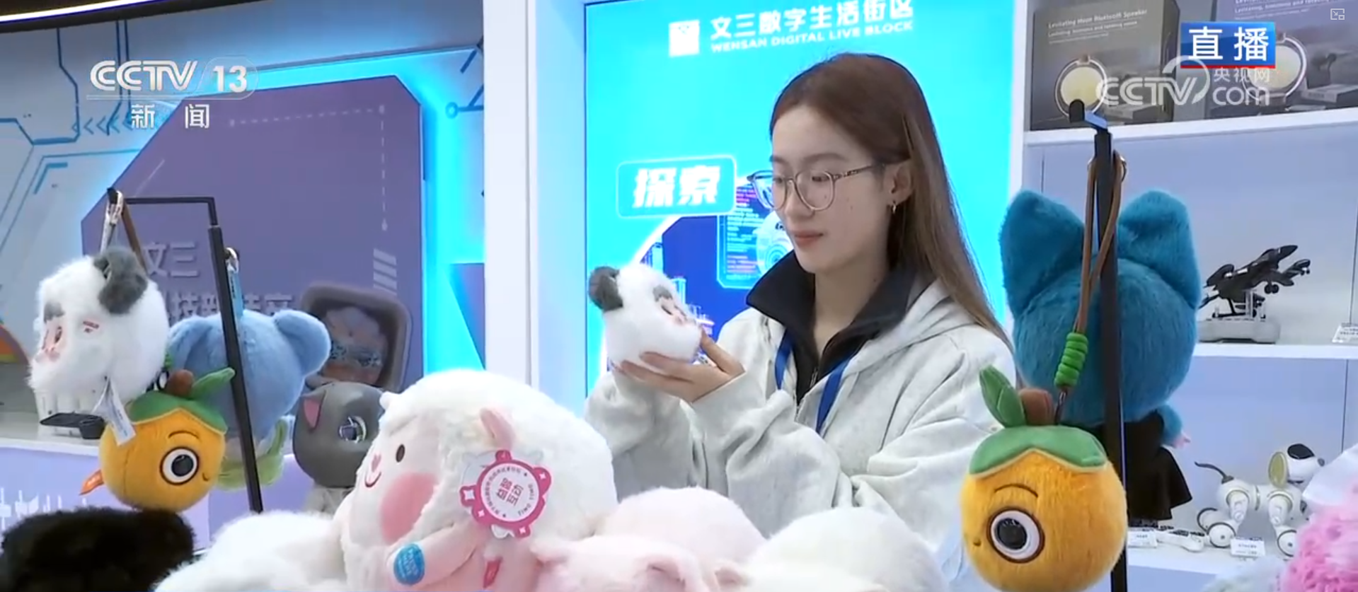 别不信,您往这儿瞧,这家就是“文三科技新特产”专卖店。从几十块钱的AI毛绒玩具到上百块的智能穿戴,再到几千甚至上万的高端AI机器人,每一样都能直接买回家。比如这个毛绒玩具,它可不是普通的玩偶,而是一个能对话、能互动的AI陪伴机器人,卡通的形象不仅治愈,也把杭州创新精神一起带回去。
