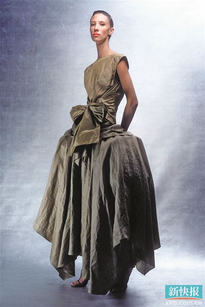 除了独立装饰带的应用,对面料本身的立体化处理也是古典戏剧风格中的重点,因而荷叶边的堆叠设计成为本季核心细节语言,设计师通过不同弧度与层数叠加,为优雅裙装注入量感与氛围感。领口的荷叶边堆叠打造出高领般的复古轮廓,弱化颈部线条的单调。裙摆处的层叠荷叶边则随廓形自然舒展,与裙撑的蓬松感相互呼应,形成虚实交织的视觉效果。(记者 梁彧)