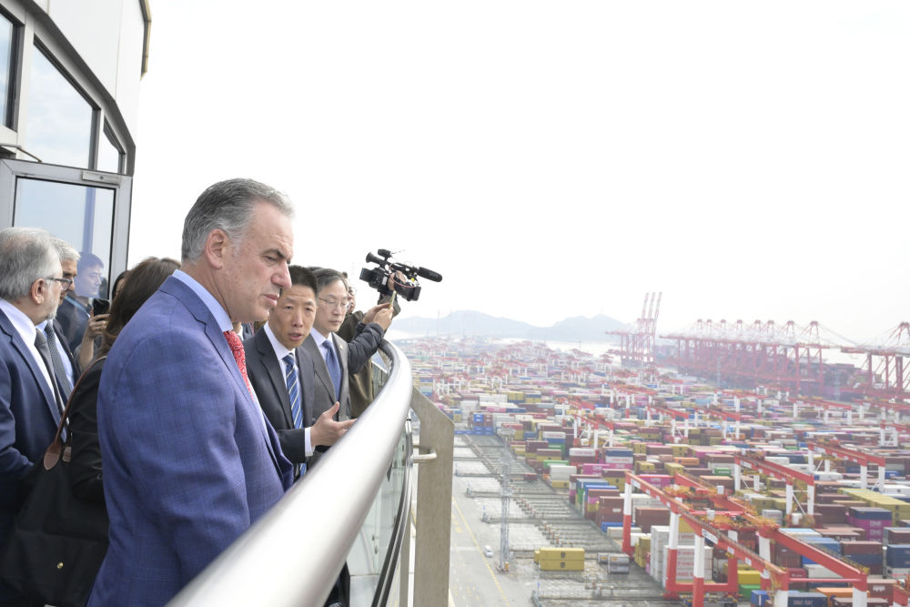 乌拉圭总统奥尔西2月5日参访上海洋山港。新华社记者 高峰 摄