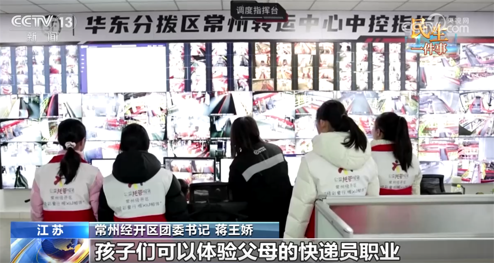 常州经开区团委书记 蒋王娇:寒托班在课程设计方面,我们也结合企业特色,孩子们可以体验父母的快递员职业,接触最新的物流技术。在未来我们也在对接开放周末班,让新就业群体的子女能够就近在党群服务中心、公司企业享受到托管服务。