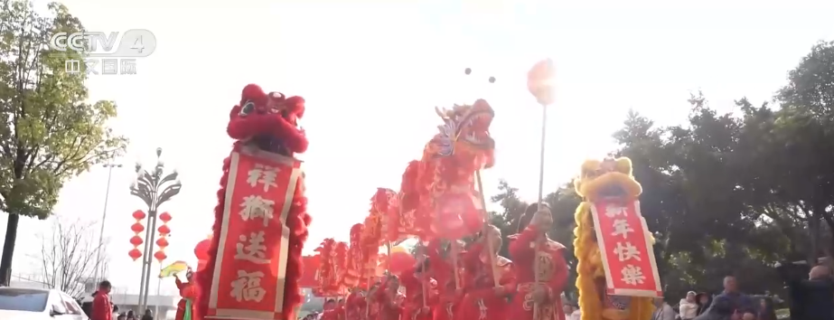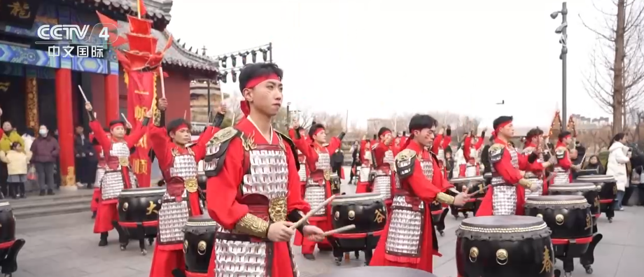 这里是在济南章丘区的清照泉城,欢快激昂的鼓点让现场格外地热闹。如果观察一下演员们身前的鼓,就能够发现每只鼓上都写了一个节气,24只鼓正好对应着一年当中的24个节气,代表着时序更替、生生不息。看完表演,游客还可以在市集上体验宋代市井生活,品特色美食。川蜀风情演龙马精神 非遗巡游热闹迎新春