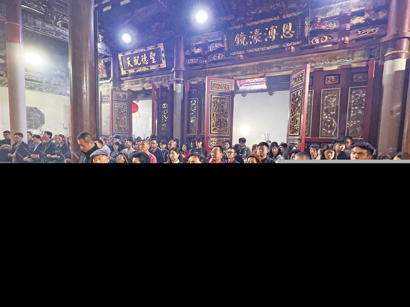 年廿九晚上11時,天后宮內外已聚集眾多手持香燭的善信,場面莊嚴而熱鬧。儀式由澳門中華媽祖基金會主席顏延齡聯同多位基金會負責人、立法議員顏奕恆、陳禮祺,以及一眾董事吳聯盟、陳明確、顏奕真、顏奕萍、黃天松、吳錫琛、吳三明、黃宗輝、顏奕賢、潘春福,副監事長劉秀珍,諮委會主席莊麗華,委員李少群、施志伴、洪文華、陳抱治、陳遠培、黃琪華、許永富、顏奕嘉、陳啟候等帶領進行。眾人在上香禮中虔誠向天上聖母行三跪九叩大禮,並獻花、獻果、獻財帛,場面肅穆。儀式後,基金會負責人與善信一同走過平安橋,敲響平安鐘、擊打平安鼓,祈願闔家平安、福慧雙至。