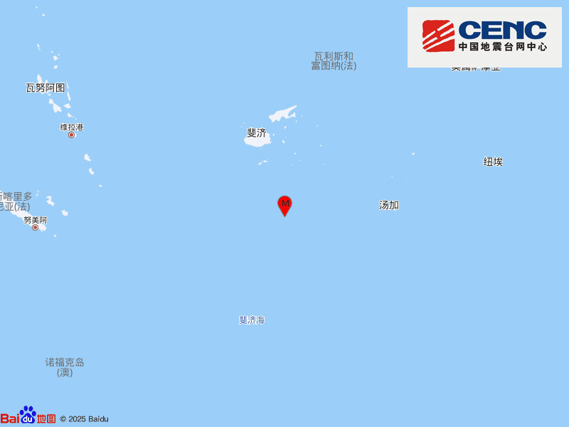 斐济群岛以南海域发生6.0级地震,震源深度650千米