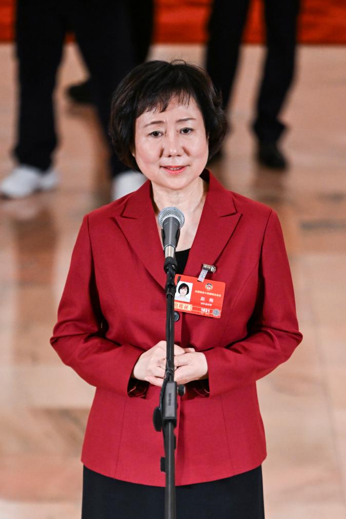 3月7日,全国政协十四届四次会议第二场“委员通道”集体采访活动在北京人民大会堂举行。这是全国政协委员赵梅接受媒体采访。新华社记者 曹祎铭 摄