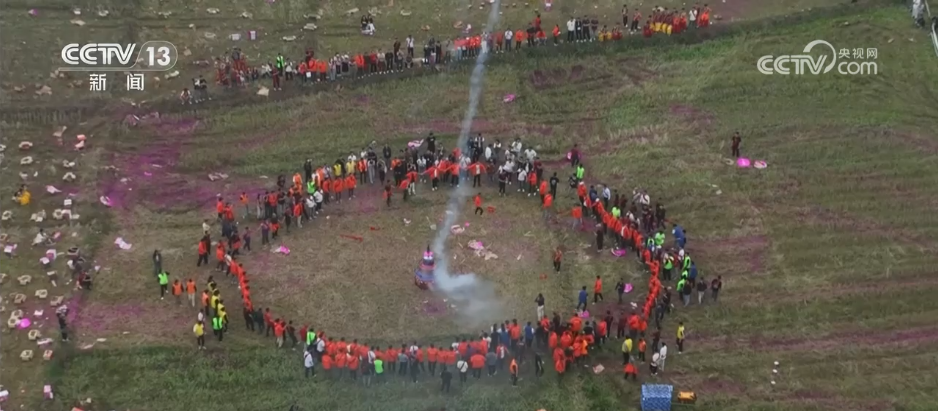 在南宁市邕宁区,当地的特色民俗“抢花炮”活动极具竞技性和观赏性。伴随着阵阵喜庆的鞭炮声,花炮腾空而起,参赛队员展开激烈角逐,队员们灵活跑位、穿插配合,争夺象征福运与吉祥的“炮头”。