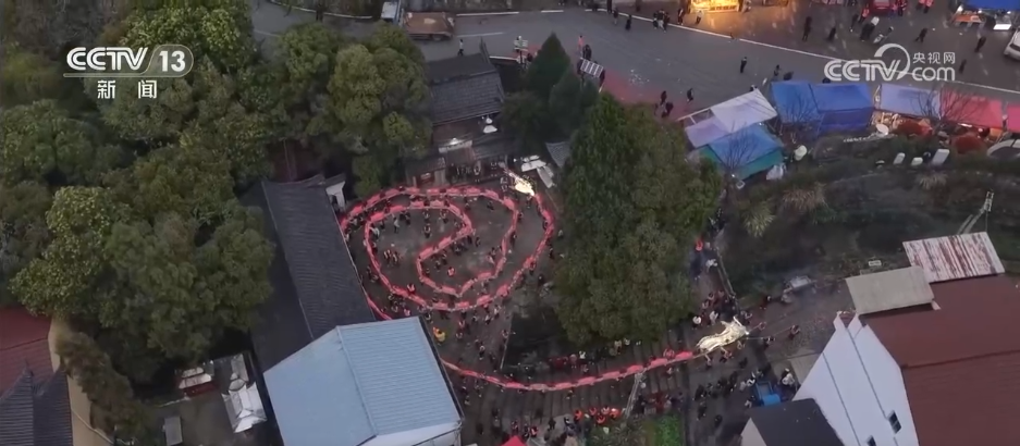 这几天,浙江各地也举办了丰富多彩的民俗活动。在浙江丽水缙云县水口村,伴随着热闹的锣鼓声,一条由66节组成、总长近百米的板龙,在150多名村民的合力舞动下,穿梭在村巷、田野、山间,宛若游龙。每当板龙遇到窄巷或转弯处,舞龙者们通过默契的呐喊互相提醒,合力完成腾挪。