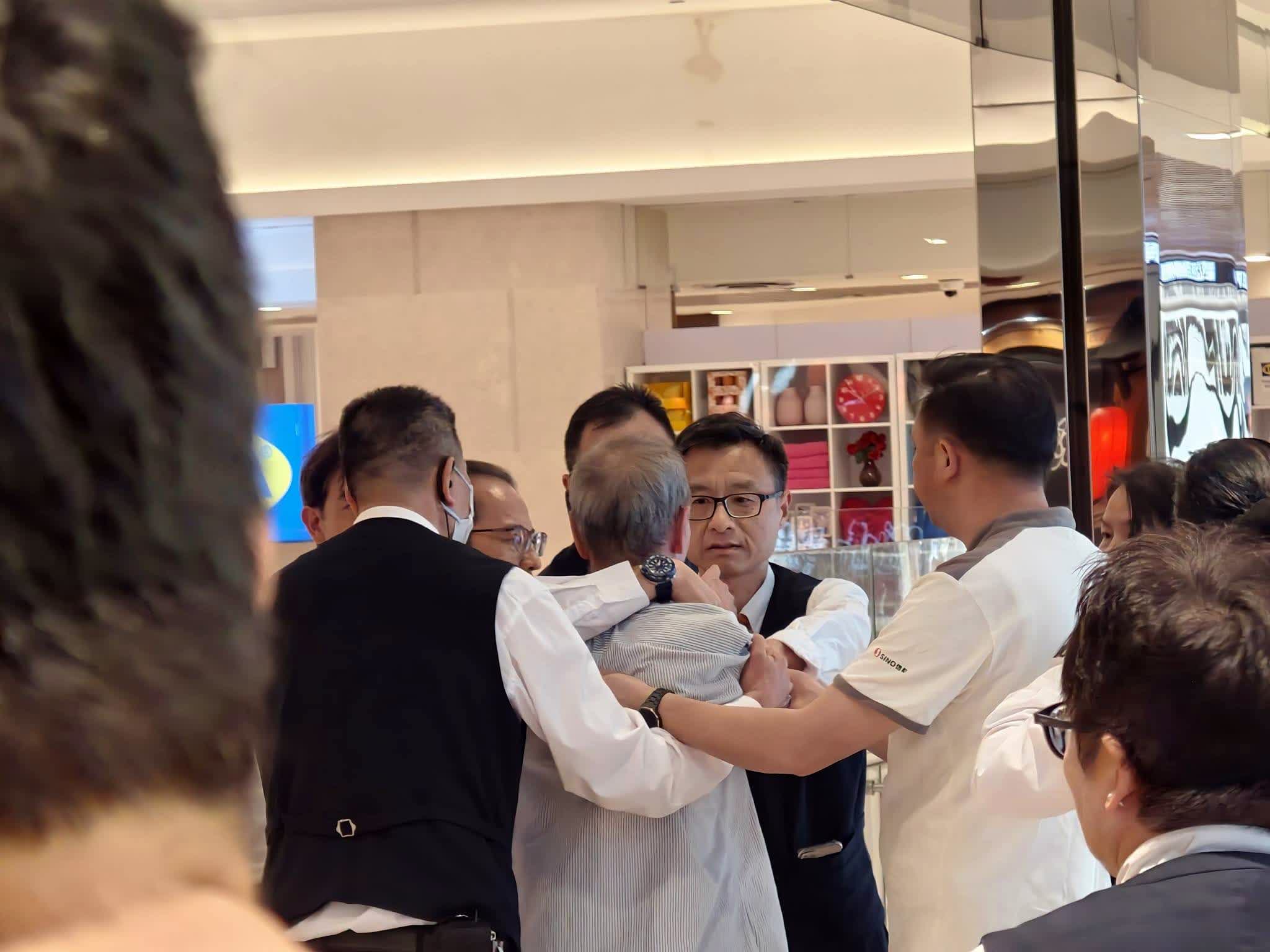 據悉,事件中的男事主74歲,其妻71歲。據網上圖片可見,當時該對夫婦站在商場中庭3樓一間拉麵店對開的商場圍欄邊,當中男事主情緒激動,被多名保安員及市民攬住,其後有警員、消防及救護員到場將該對夫婦送院。警方仍正調查事件。