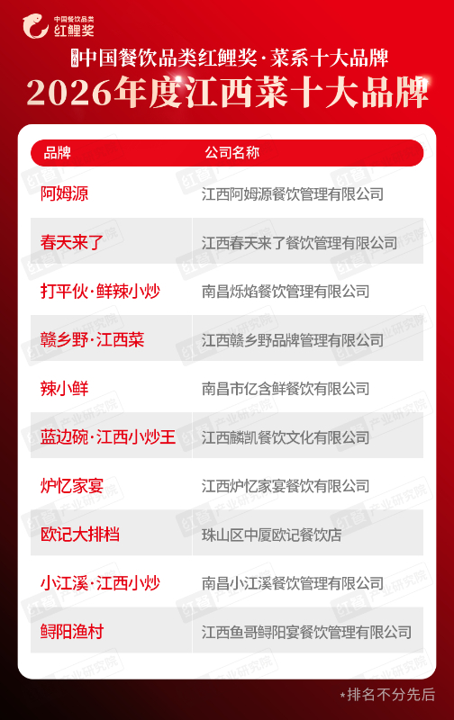 “第八届中国餐饮品类红鲤奖·菜系十大品牌”榜单的发布,集中展现了地方菜赛道的核心力量与发展方向。展望未来,期待在这些标杆品牌的示范带动下,有更多餐饮品牌在深耕地方风味的同时持续突破边界,推动中国餐饮迈向更高质量的发展阶段。