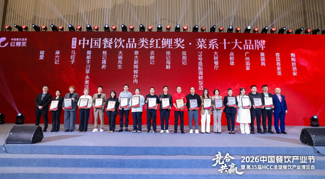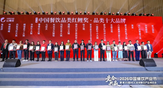 2026年3月25日,“第八届中国餐饮品类红鲤奖”颁奖盛典在杭州大会展中心举行。当天,现场公布了“第八届中国餐饮品类红鲤奖”榜单,共有45个细分奖项,450个品牌荣耀上榜。