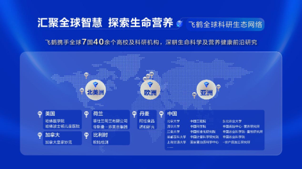 飞鹤全球科研生态网络,与7国40余个高校和科研机构建立深度合作
