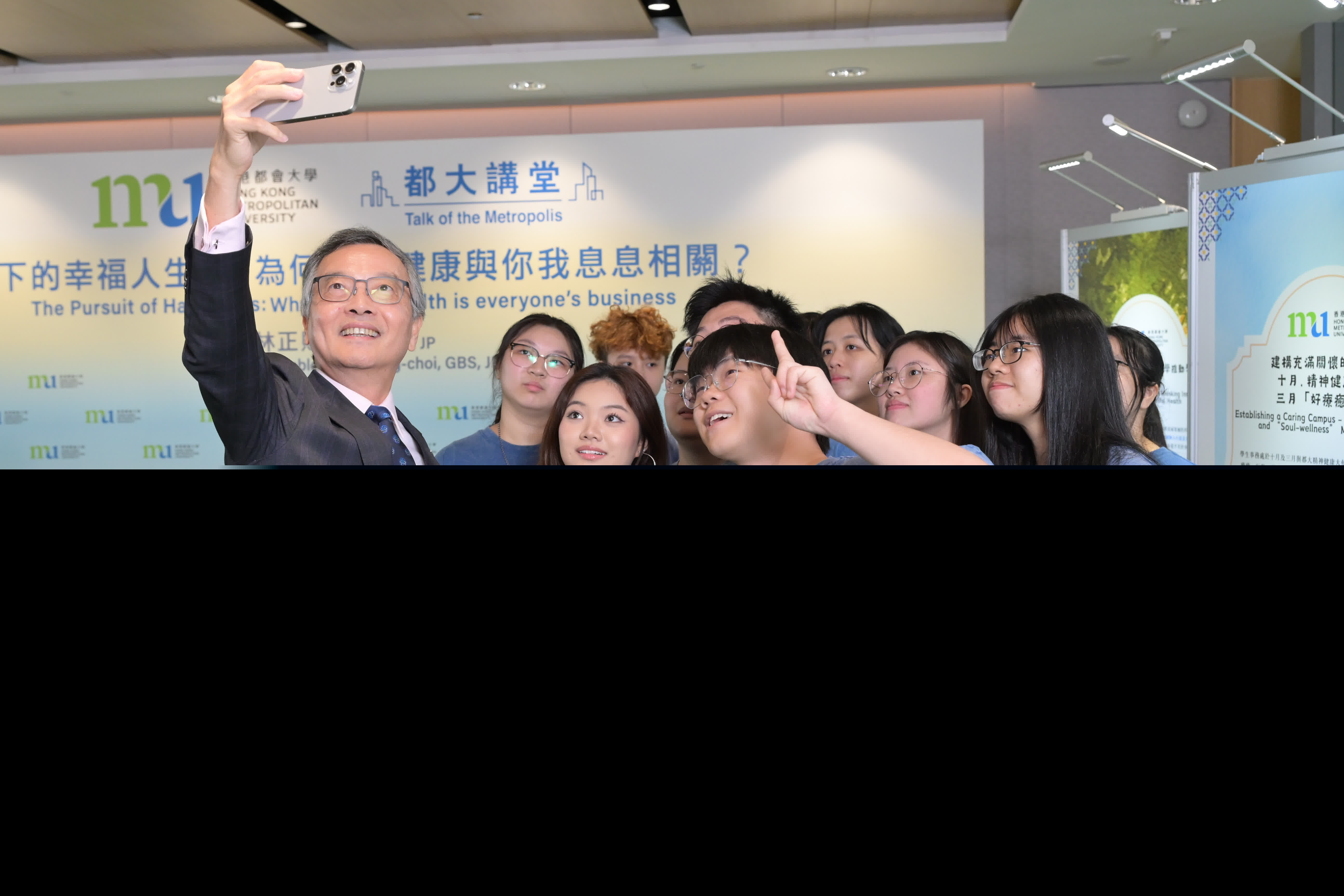 香港都會大學(都大)昨日舉辦本年度首場「都大講堂」,邀得行政會議成員兼精神健康諮詢委員會主席林正財擔任主講嘉賓,以「當下的幸福人生——為何精神健康與你我息息相關」為題,鼓勵大眾關注自身身心健康,並主動關懷身邊人的情緒需要,發揮守望相助精神,共同營造關愛互信的校園文化。